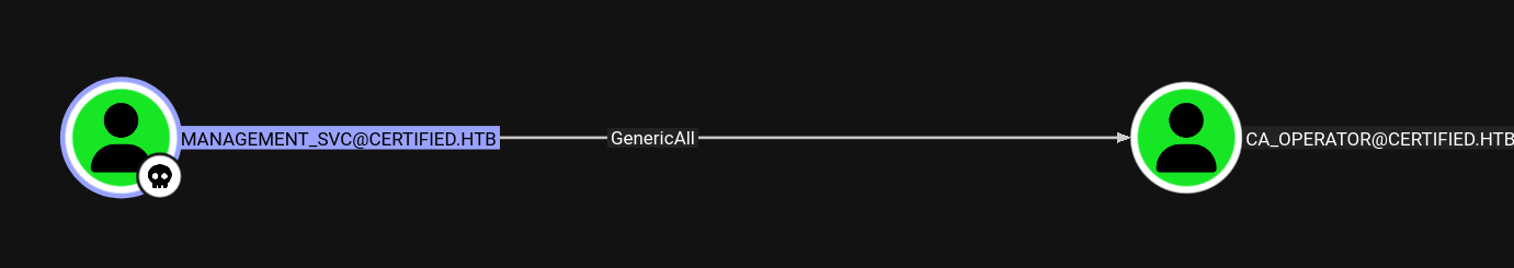 BloodHound revealed that management_svc has GenericAll over the ca_operator account: