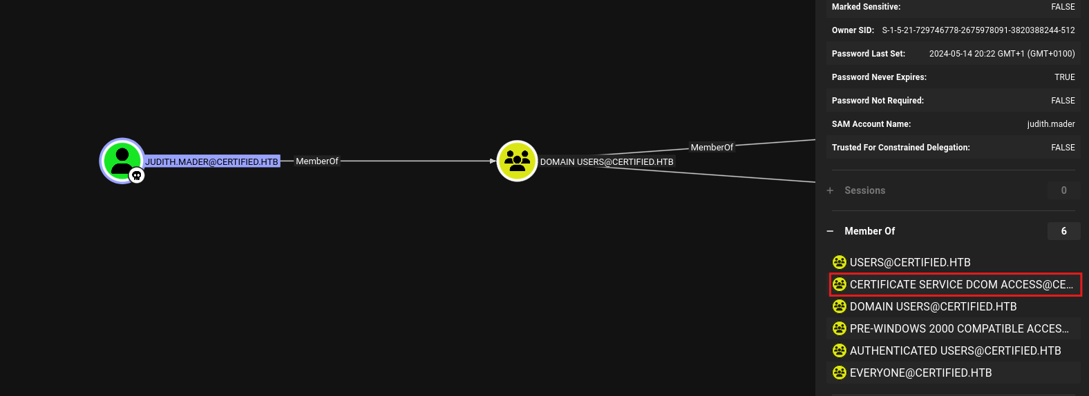 BloodHound revealed the following privileges for judith.mader: